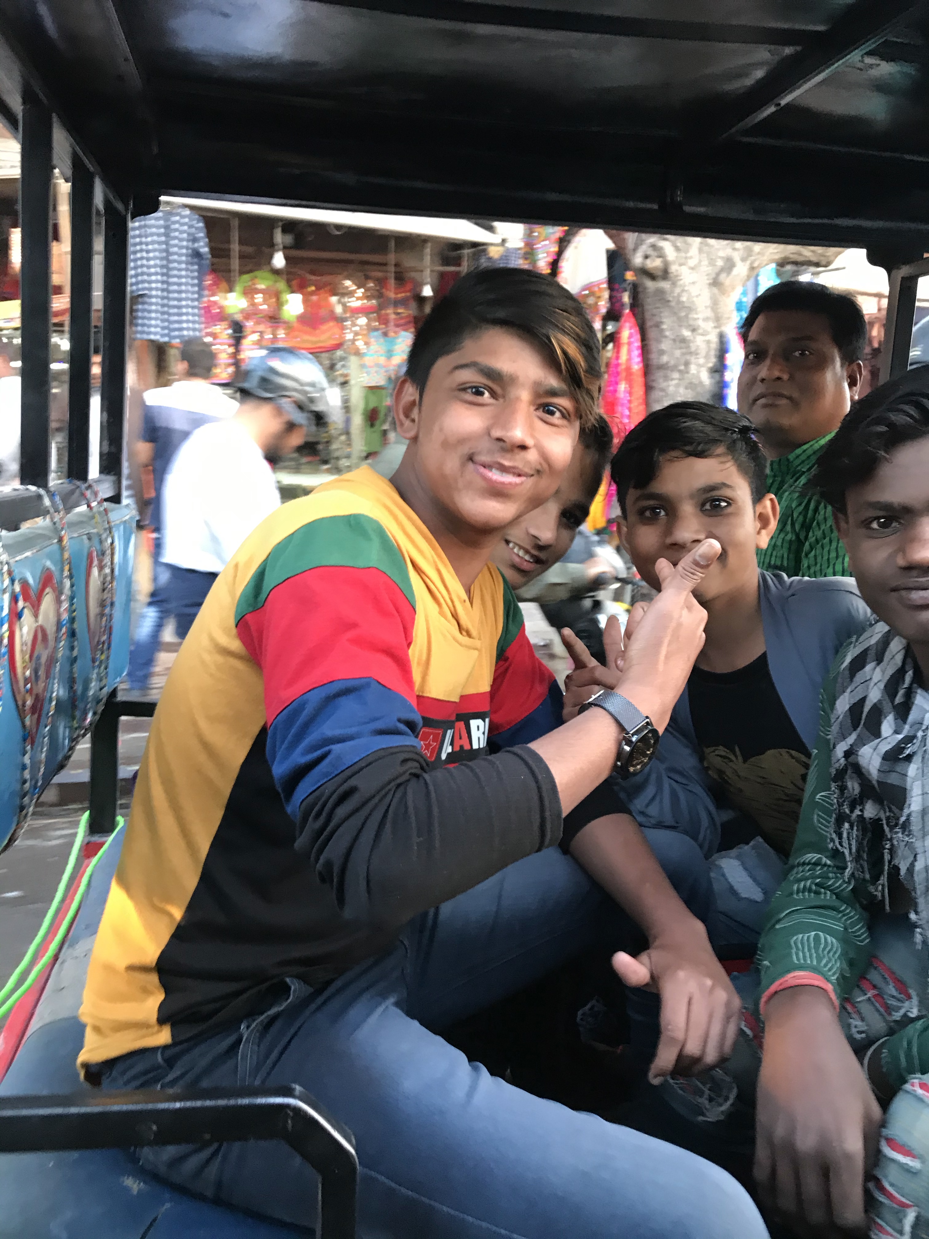 I stayed at a heritage hotel, with unique, individually hand-painted rooms (Pearl Palace Heritage) and hired a Muslim tuk tuk driver from Jaipur City Exploring, Sharukh, who knew the city like the back of his hand. I loved the crazy driving and the beeping. It’s like a dance – everyone makes room for each other and there is no rage. It just sounds like rage, to a Western ear, trained to hear beeping a horn as an expression of frustration. It isn’t in India, it’s simply, ‘I’m here’ or ‘go ahead’. And it’s compulsory to do it, which is why the backs of lorries say, “BLOW HORN OK”. I’ve always been someone who doesn’t mind walking out in front of oncoming traffic so it suits me here – you have to trust or believe that the person will stop or move round you, and there’s a greater likelihood of that here. I also don’t mind dirt and dust. You can’t enjoy being here if you’re addicted to hand sanitiser…