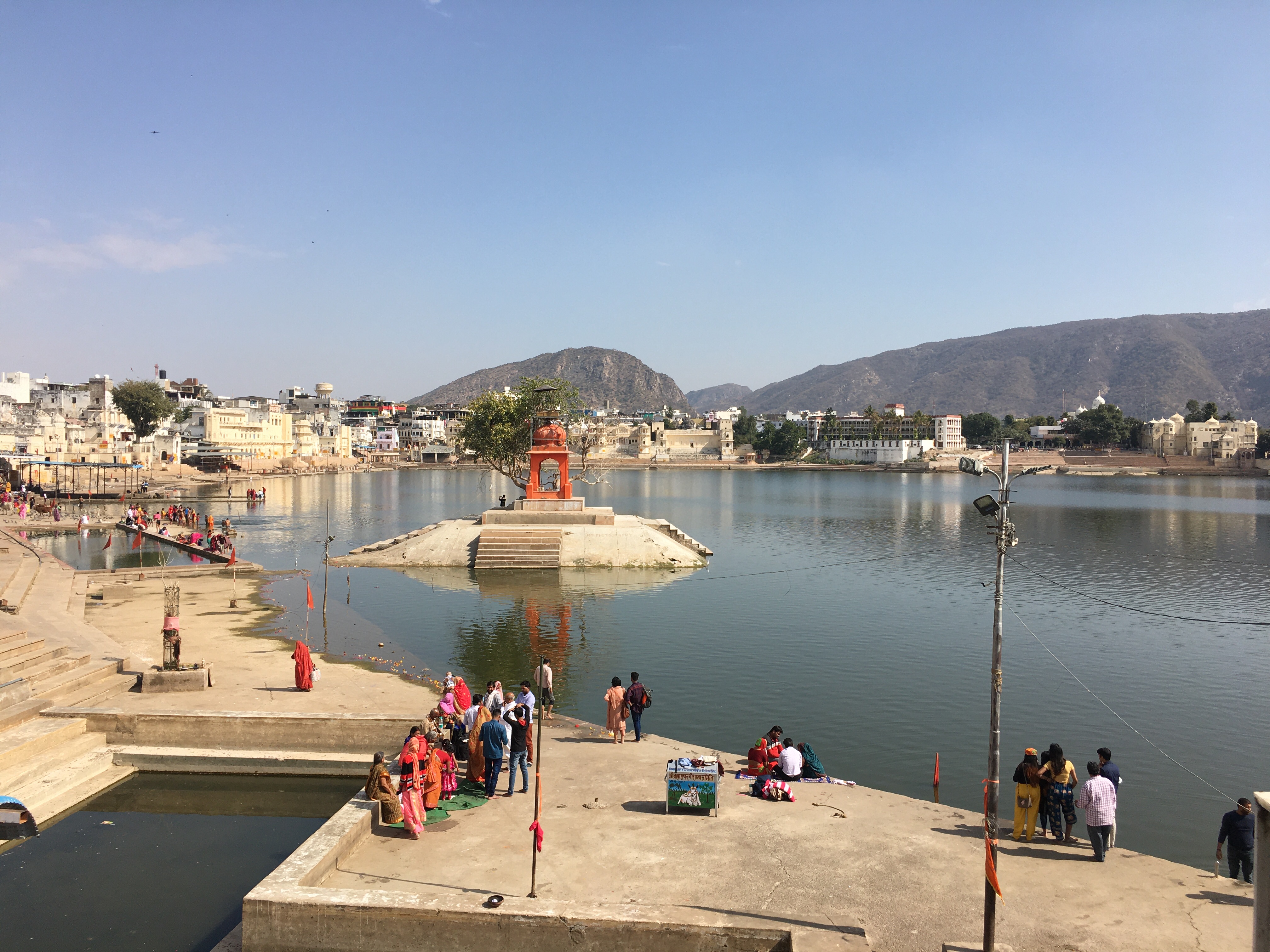 On the advice of numerous friends, I then changed my plan to stay one more night in Jaipur to go to Pushkar, which was on the trainline towards my next destination, Udaipur. It turns out that most people’s delight in it stems from experiences in India twenty or thirty years ago, because now it feels like a Hindu theme park. I did enjoy wandering through the bazaar down to the lakeside ghats but the best bit for me was getting lost at night looking for a way out to a tuk tuk – I came across a temple doing pooja, with all the bells clanging, drums beating and a priest holding candles aloft outside, gesturing across the lake. I later discovered that the cacophony is intended to remove ‘obstacles’, to clear the mind of distractions. The sound is intended to create the om, the sound of the universe, of the sun. Once I knew that, the frequent nighttime poojas in Udaipur soothed me rather than frazzled my nerves.