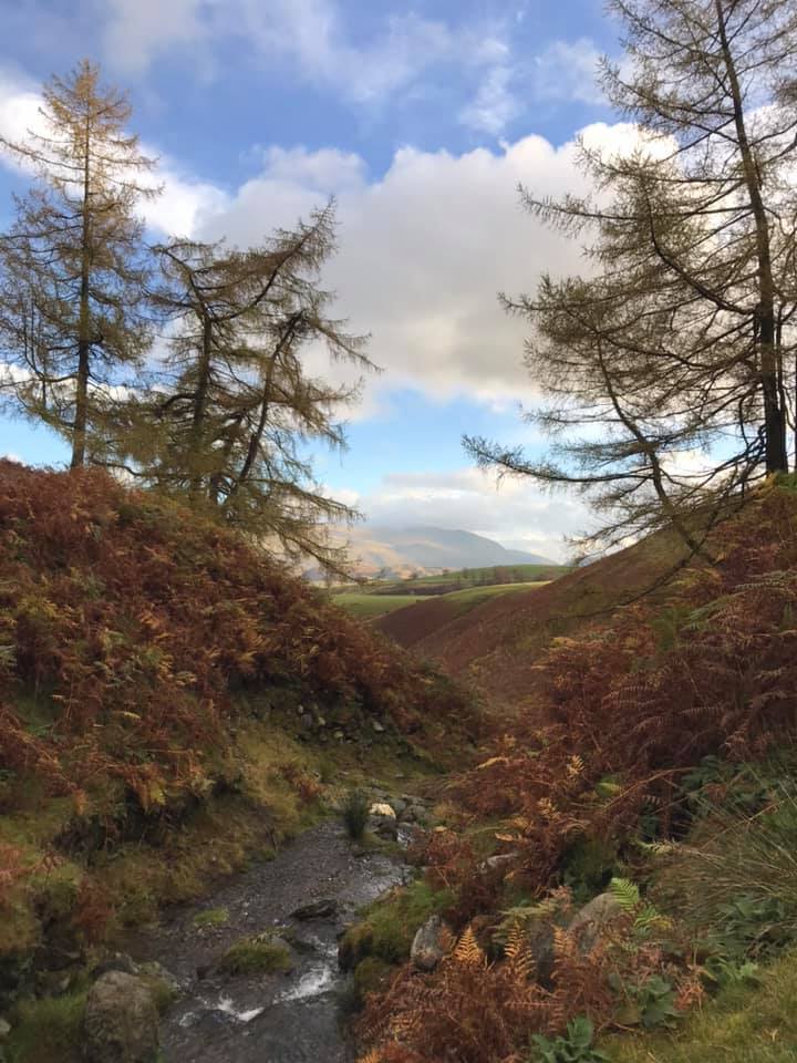 One of the best stretches of this 70+-mile path is the section taking you through Stake Pass, in the Langdale/Borrowdale area. What we didn’t know, as we left the wonderfully cosy and comfortable Langstrath Inn, was that we’d be walking through a series of streams and rivers all along the way. Recent heavy rainfall had made small tributaries gush into the main river and we would both become adept at hopping across stones and boggy land to reach our destination.