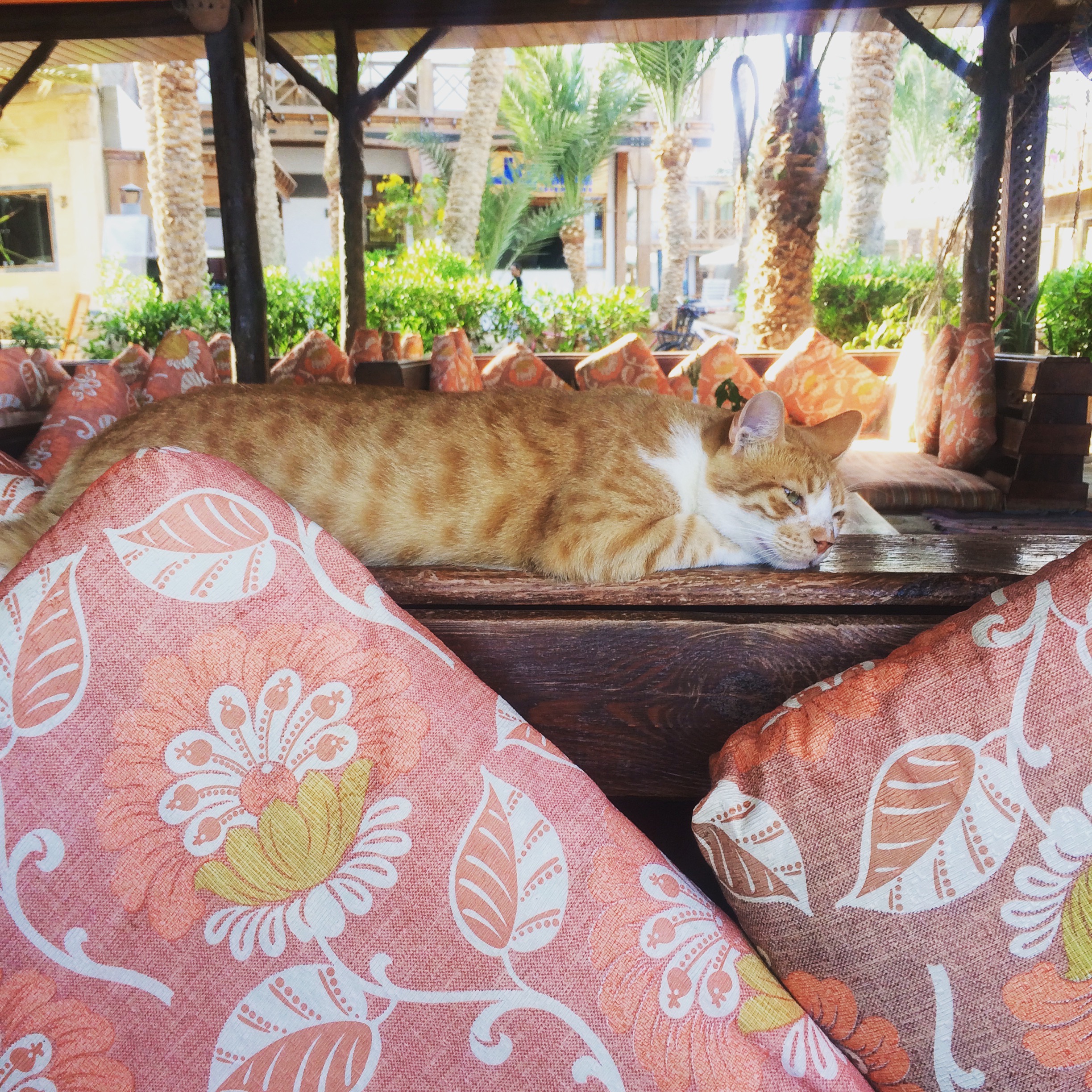 As you do. I’ve also been joined by a variety of animals – Bufra’s daughter, Fatty, and a load of cats. NB. Don’t order the tuna salad unless you have a water gun by your side. They appear like something out of Dawn of the Dead.